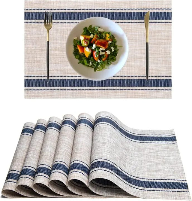 Experience the elegance and quality of our 6PCS Table mats Placemats Set! Crafted with high-quality PVC material, these mats are designed to elevate any dining experience. Prepare to be impressed as you dine on these durable and stylish placemats. Order now and upgrade your table decor with our 6PCS set!