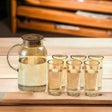 Experience the ultimate in durability and elegance with our 7-piece heat-resistant borosilicate glass pitcher and glasses set. The spacious 1.9 liter pitcher and 6 matching 240ml glasses provide ample capacity for all your beverage needs. Crafted from premium borosilicate glass, this set is designed to withstand high temperatures and resist breakage. Elevate your dining experience with this must-have set that combines practicality with stunning design. Order now and enhance your kitchen collection with this exceptional set!