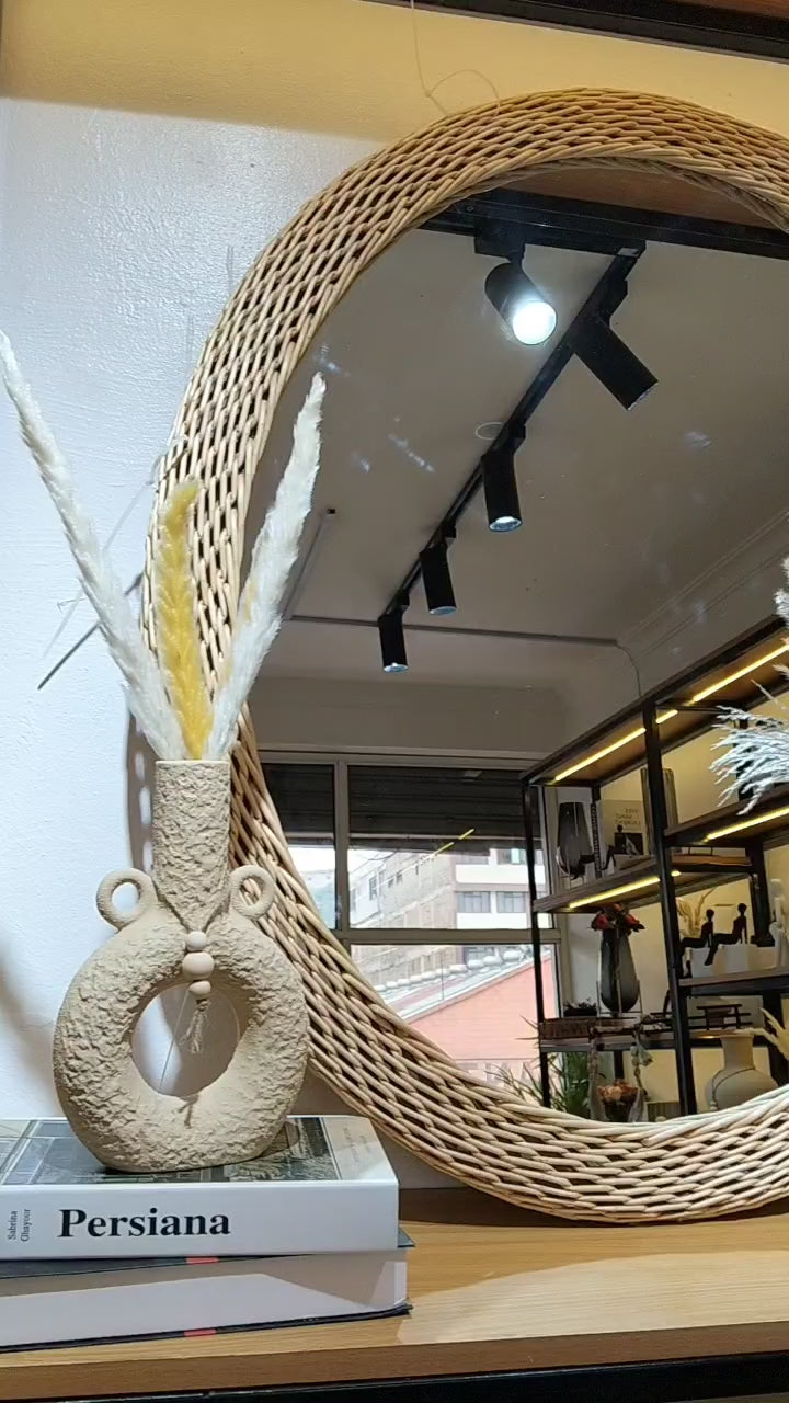 Big Size Modern Oval Rattan Bamboo Decorative Mirror