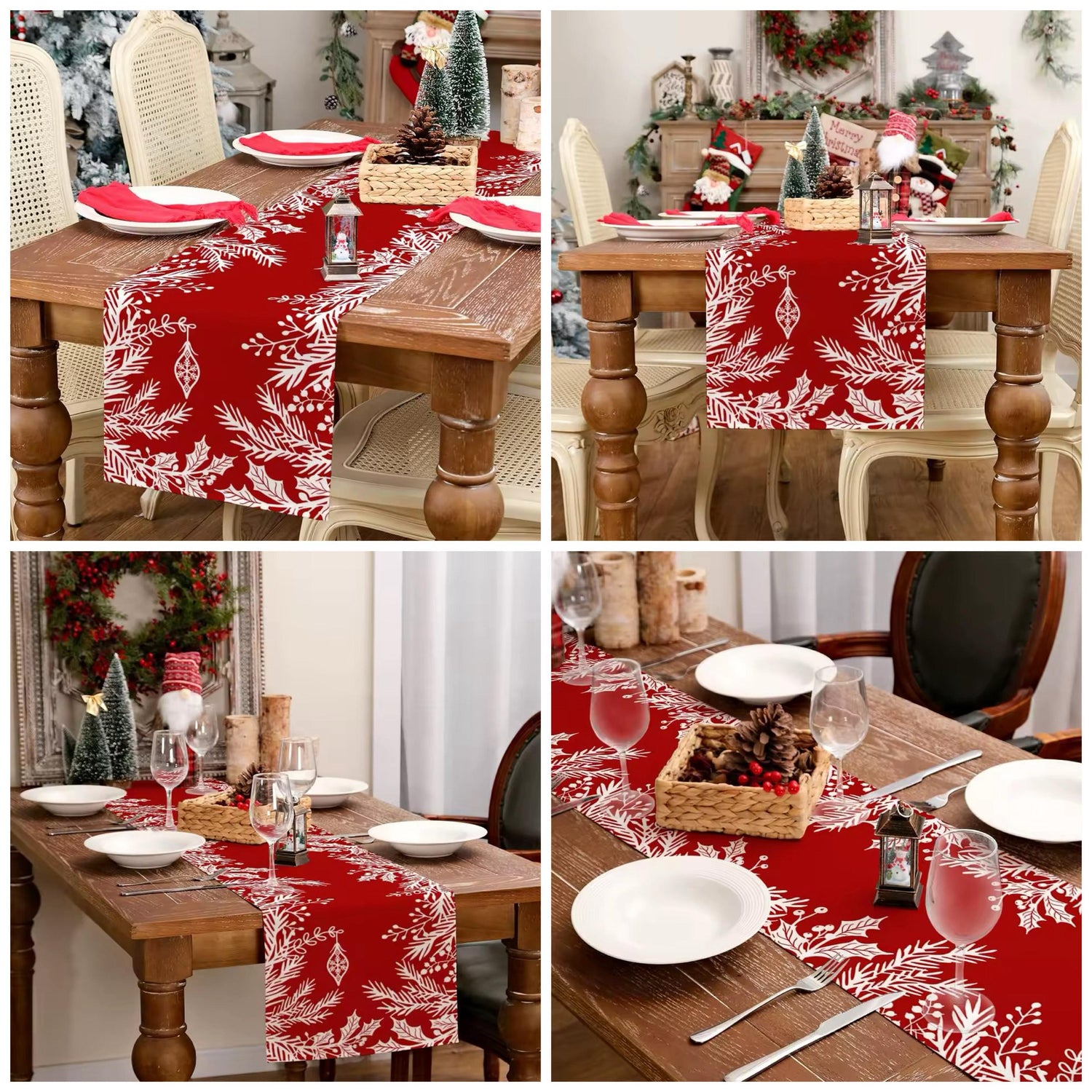 Christmas Table Runner Snowman Gnome Table Cloths Linen Table Runners Kitchen Dining Table Runners for Home Dining Party Decor