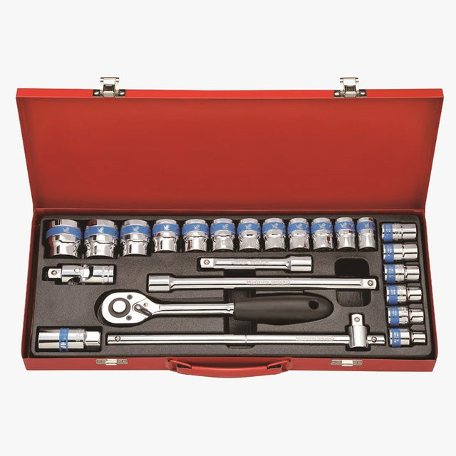 The Dr. Socket Wrench contains 24 pieces set in metal tool box, all tools are made from good quality chrome vanadium steel and protected by a chrome plated finish.