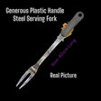 Add some generous style to your serving with our Plastic handle Steel Serving Fork. The sturdy steel design paired with a comfortable plastic handle makes for a utensil that is both durable and easy to use. Perfect for all of your serving needs, from holidays to everyday meals.