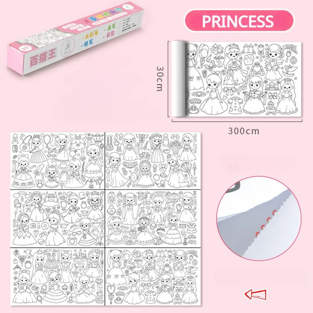 Kids Drawing Toys Sticky Coloring Roll Paper DIY Graffiti Scroll Color Filling Paper Painting Educational Toys for Girls Gift
