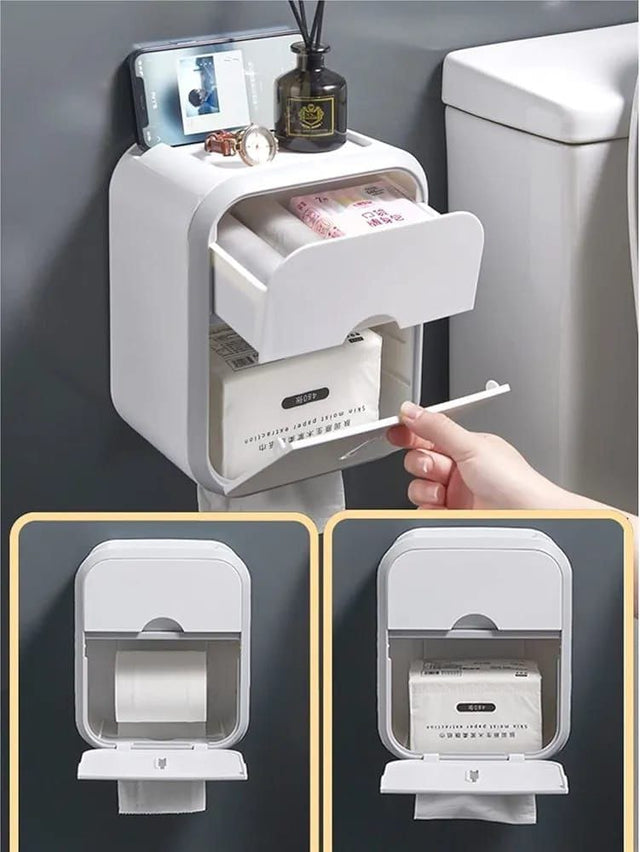 - A tissue box holder with storage box helps hide the boring look of a regular square tissue box.