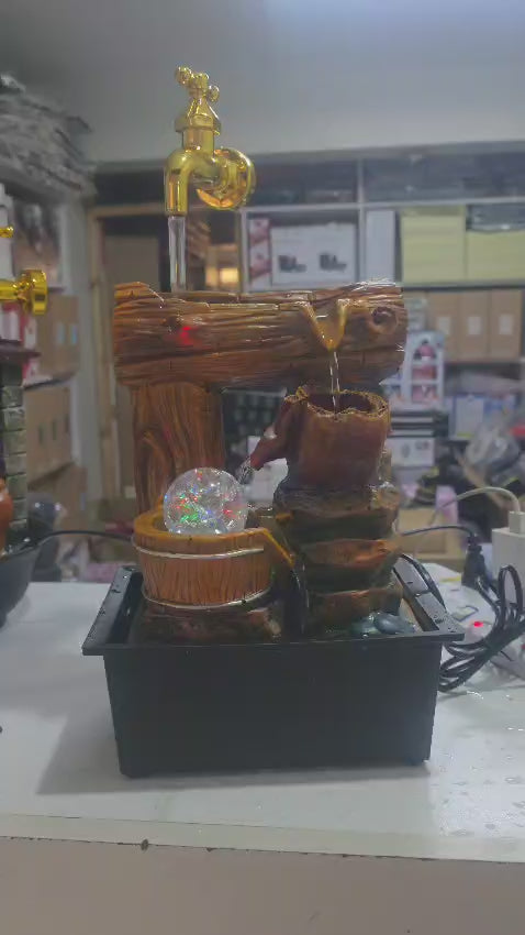 Experience the captivating charm of the Rustic Flow LED Tabletop Fountain with Magic Faucet. Its floating faucet illusion creates a mesmerizing visual effect, making water appear to flow magically from a suspended tap. Designed with rustic imitation wood, stone, and ceramic elements, this fountain brings a natural, earthy aesthetic to any indoor space. Enjoy soothing, multi-level water cascades flowing through a jug and barrel, producing calming natural sounds that enhance relaxation. Compact and stylish, with dimensions of 42*16*21cm, this fountain is perfect for adding tranquil ambiance and a unique conversation piece to your home or office décor.