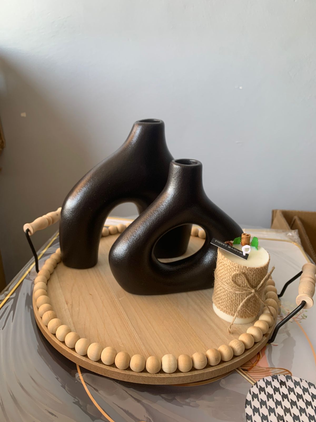 Rustic Wooden Round Beaded Tray