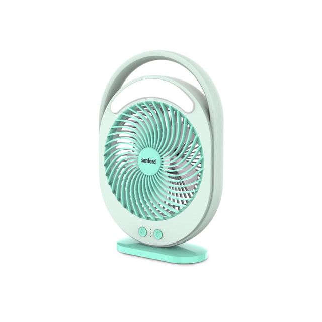 Designed for quiet, safe, and energy-efficient performance, it includes overcharge protection for durability and peace of mind. Compact and lightweight, the Sanford 2-in-1 Rechargeable Fan is your reliable companion for home comfort, outdoor adventures, or emergency use.